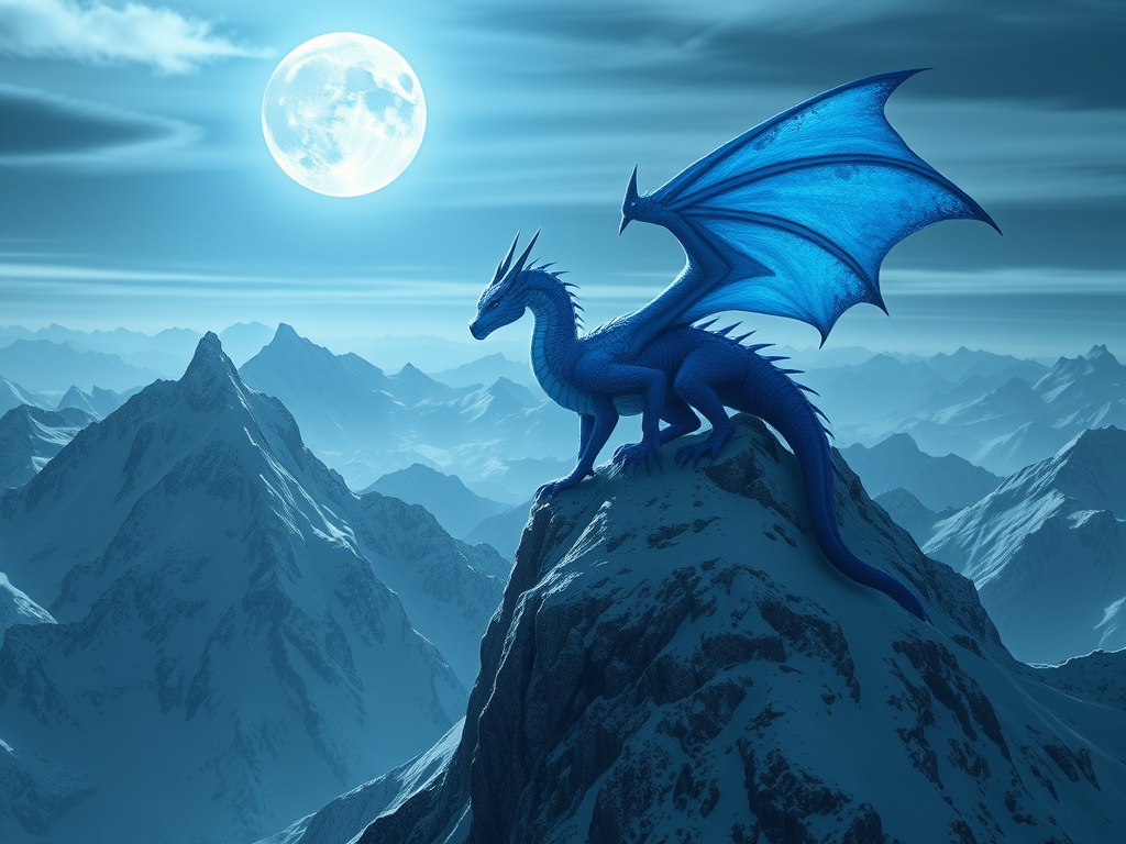 The blue dragon, now grown larger still, with his giant wings often soared through the skies in search of food, longing to find evidence of other dragons.