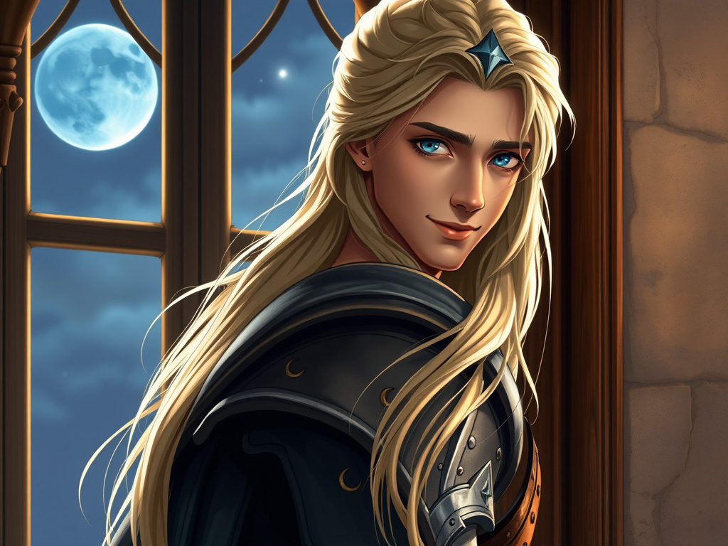 Desiring not to frighten her and wishing for a favorable response, he first transformed himself into a human male. He’d seen certain illustrations in poetry books, specific figures that she expressed some interest in, therefore he fashioned himself into a mixture of those features she liked best: a youth of similar age, rather handsome and dressed in fineries. He even picked a name for himself: Maviaku Brug, which translates as, ‘Blue Moon Dragon’.