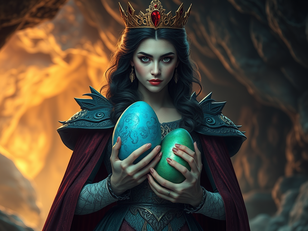 Long before he was born a meteorite crashed into this Planet and devastated the entire island, causing a massive extinction of many species including the antediluvian Dragon Kingdom. The Dragon Queen, with her gift of premonition, foresaw this cataclysm. When her warning fell on deaf ears, she arranged to have both of her precious blue and green eggs stored with the necessary provisions deep in the caverns of a mighty mountain.