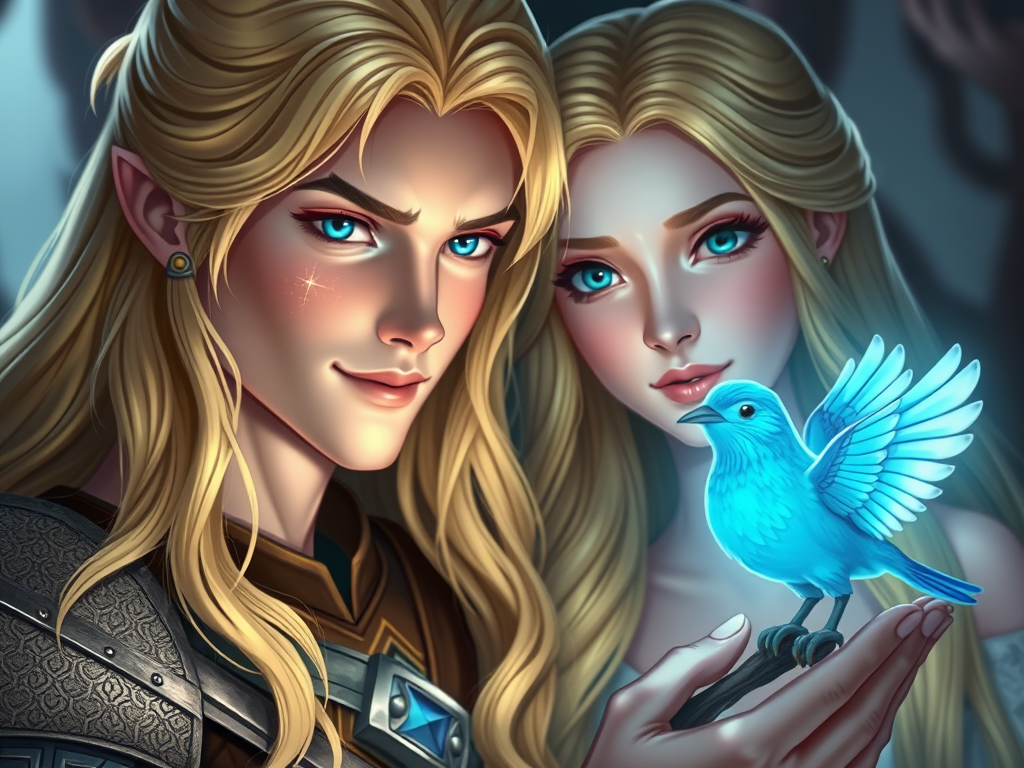 With a shy smile he drew a small packet from his robe, wrapped in a blue cloth that shimmered as if with the light of many stars. When she opened it she saw it was a figurine of a songbird.