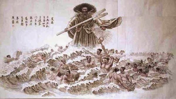 Seeing the new land, ready for planting, the people left their caves in the mountains and ventured down onto the fertile plains. In their gratitude they begged Yu to become their Emperor. Thus Yu, the Golden Dragon, became a Man-God and lived a long lifetime on the Earth, almost as long as he would have lived had he stayed as a Dragon. Under his guidance mankind grew knowledgeable in following the ways of Heaven and gained favour in the eyes of the Yellow Emperor.