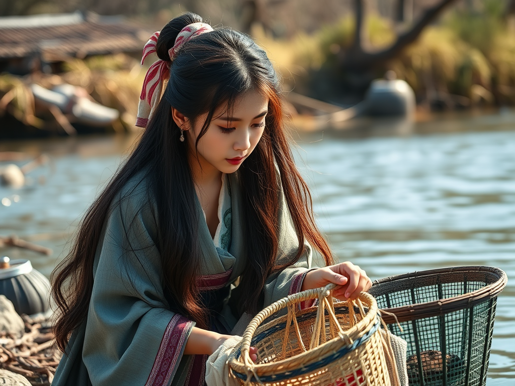 During the Qin Dynasty, in the Teng District of Guangdong Province a second girl child, named Wen Shi, was born to Wen Tianrui and Liang Shi. Wen Shi often frequented the banks of the nearby Xi River to catch fish or do the laundry.