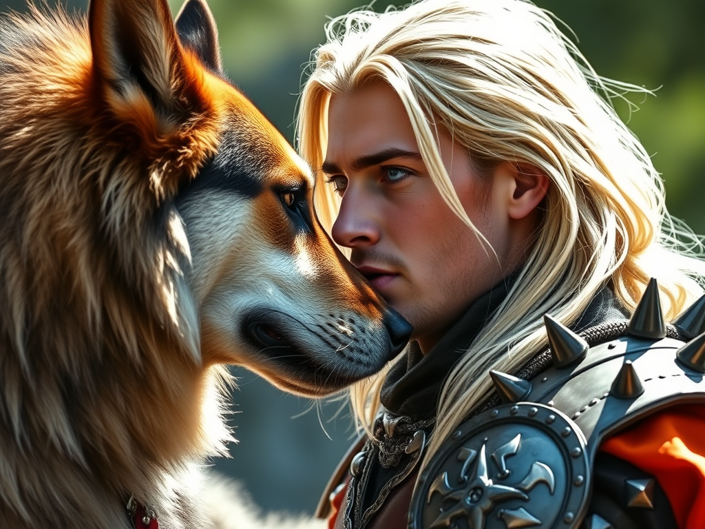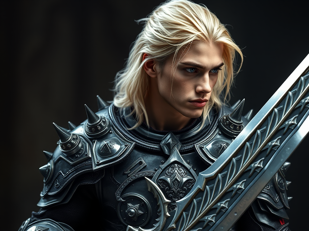 Peter Loschy was a handsome young warrior with long blond hair, blue-grey eyes, and a stunning (splendid, striking) physique (build, form, body). On his eighteenth birthday, this adventurous, heroic warrior, breaking many (girl’s) damsel’s hearts, set out on a quest to rid the kingdom, once and for all, of this terrible scourge.