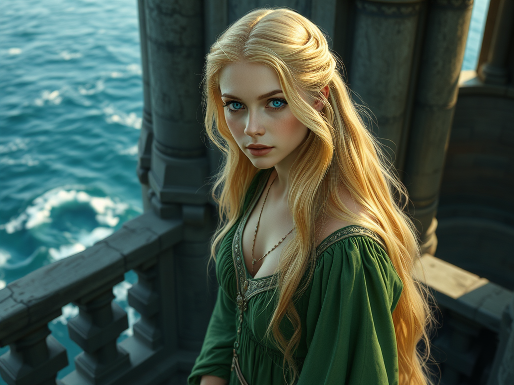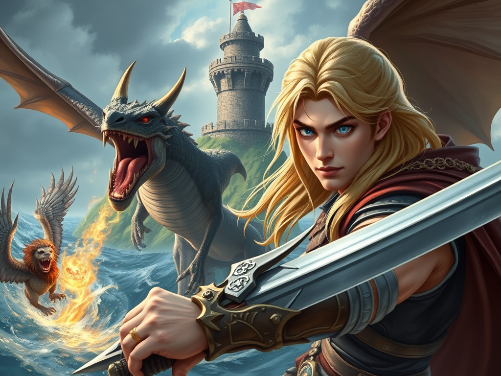 He’ll have to be clever enough to sail a ship through the Nine Whirlpools that spin around the island, and to kill the dragon and the griffin. Till he comes you’ll never get any older or any wiser. No doubt he will soon come. You can employ yourself in embroidering your wedding gown. I wish you joy, my dutiful child.”