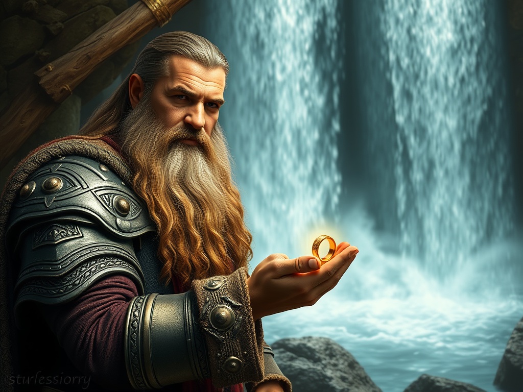 Andvari had amassed his large hoard of gold using the power of his magical ring Andvarinaut, and Loki made sure that the ring was also part of the deal. Andvari, however, was also gifted in magic and cursed the treasure so that whoever saw it would covet it and further cursed the ring Andvarinaut so that it would bring about the death of any mortal who owned it. Loki presented the treasure to Hreiðmarr, who fell under the spell of the Ottergild (Otter’s Gold) and forgot all about his dead son. As soon as the ransom was accepted Loki, Odin and Hœnir left the castle without a moment’s delay.