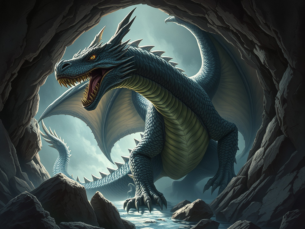 Stevor who was now dwarfed by the serpent’s size, he nevertheless stoically stood his ground and brandishing his small blade (dagger), eyed those terrible fangs. The snake hesitated, and desiring not to escalate this gross misunderstanding, he shape-shifted (altered) instead, stealing Stevor’s breath, as he transformed into a fierce, mighty dragon!