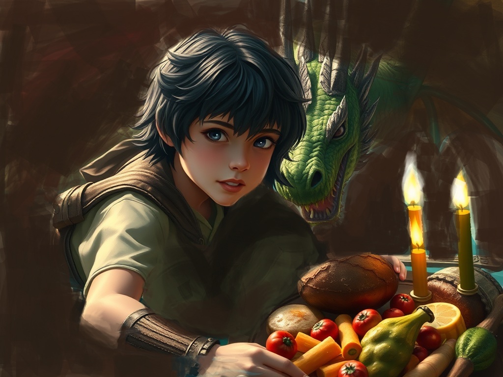 Stevor, when he stepped inside, was at first bit unnerved, seeing that he was expected and that there was an additional plateful already placed at the table for him; nevertheless, he quickly took up his seat next to the boy.