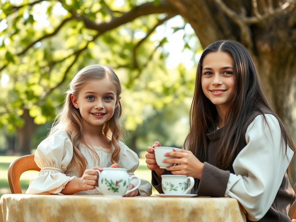 The Princess Juyin and the (grounds’ keeper’s) gardener’s boy Stevor had always gotten along famously and since very little, were very good friends; having rich imaginations, they often played in the backyard garden, creating adventurous scenarios where the princess was always saved by a dashing, heroic warrior, after Stevor slayed the bad monster with his wooden sword. At noon, they would take brief respite under the huge elm tree, sipping pretend tea, eating tiny cucumber sandwiches and conversing.